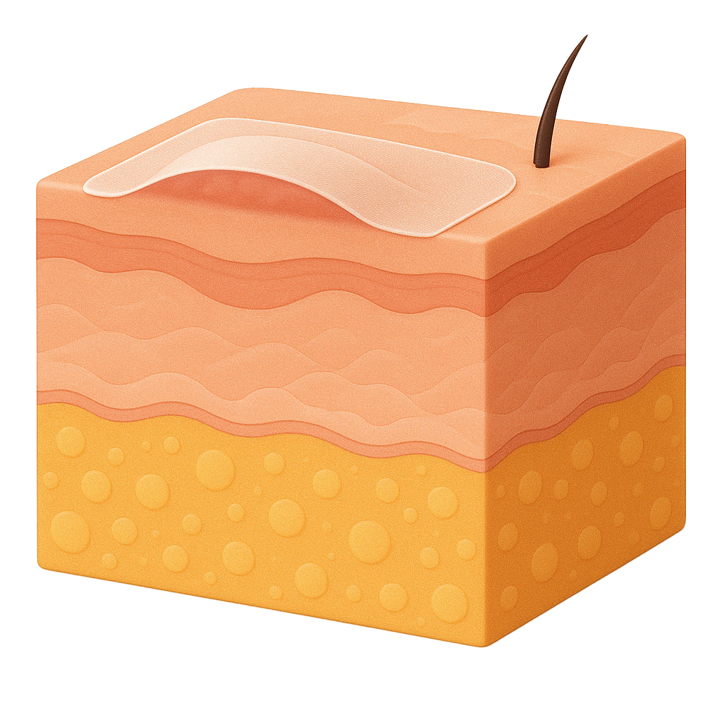 The silicone forms a gentle barrier over the scar. This reduces irritation from movement and clothing, helping the skin shift from active healing into a calmer, more organised repair phase.